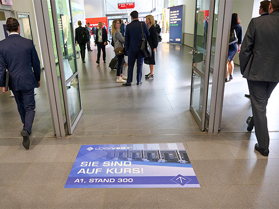 Der Werbeträger zeigt den Teilnehmern bereits am Eingang, wo es langgeht. An einem strategisch günstigen Ort im Eingangsbereich West oder in den Hallenübergängen platziert, weisen Sie Ihren Kunden damit den direkten Weg zu Ihrem Stand.