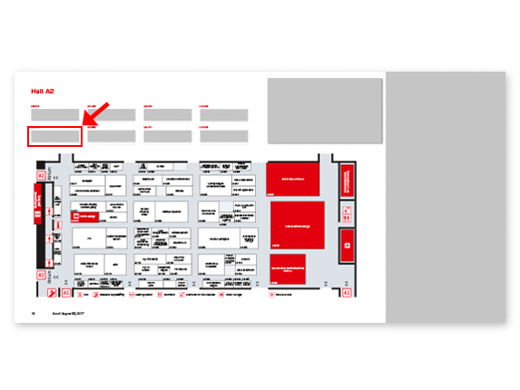 When booking an exclusive logo above the hall plan, you are published in the EXPO REAL Guide, the Exhibitor Directory online and on large poster plans directly in the trade fair halls.