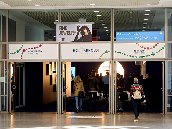 These highly frequented window surfaces greet visitors already from a distance with your message and accompany them directly into the halls and to your booth.