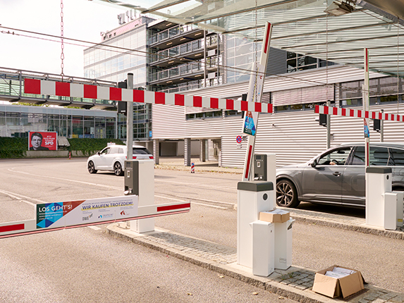 Open up car drivers the way to the trade fair with barriers with your branding at the entrance to the parking garage. Book up to ten different locations for your advertising.